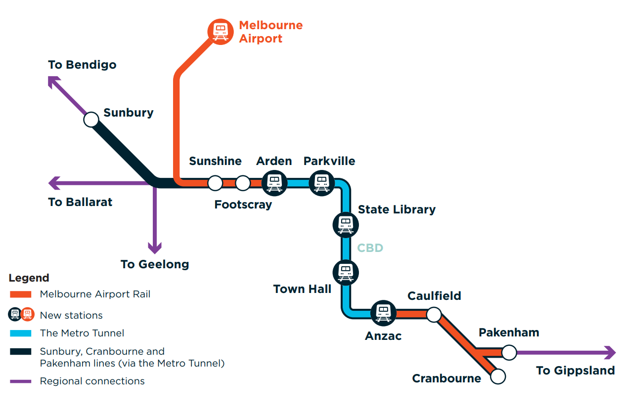 The new Rail Link is to run from Melbourne Airport through to Sunshine Station, then into the Metro Tunnel, visit this link for more info.